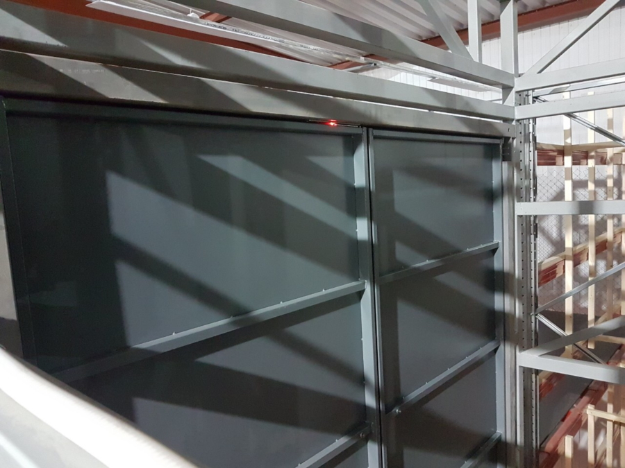 - Двери шахты с электромеханической блокировкой. Автоматически блокируют возможность механического открытия дверей.